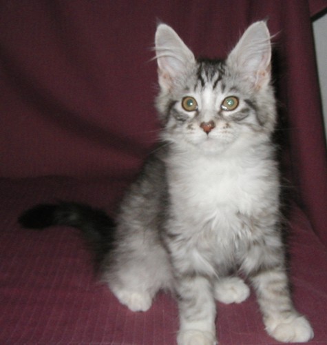 For those who are interested, momcat is CH Holdermaines Chaparrel and dadcat is IW,SGC Holdermaines Lil Dude Coon. (Which also makes him Petey's half-brother.) Anyone who wants to see a longer pedigree (and all the associated statistics) already knows where to find it, I'm sure. :-)