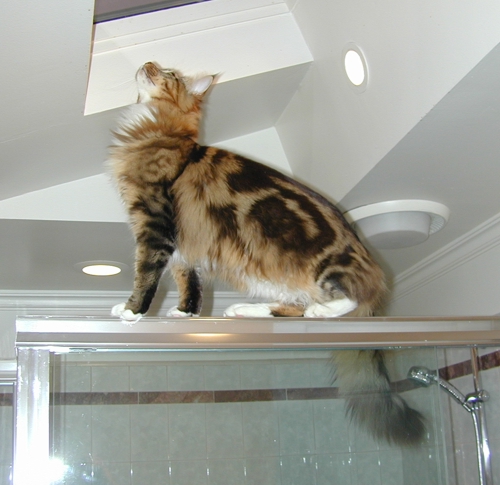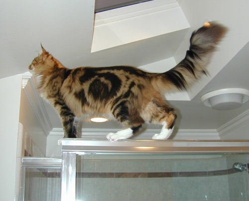Eddie demonstrating that Maine Coons *can* climb! Of course he wasn't full-grown when he did this.... he's way too big to do anything like it now.